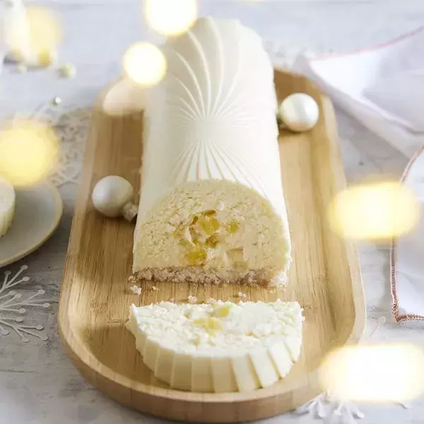 Bûche amande -rhubarbe Bûche pain d'épices marron
