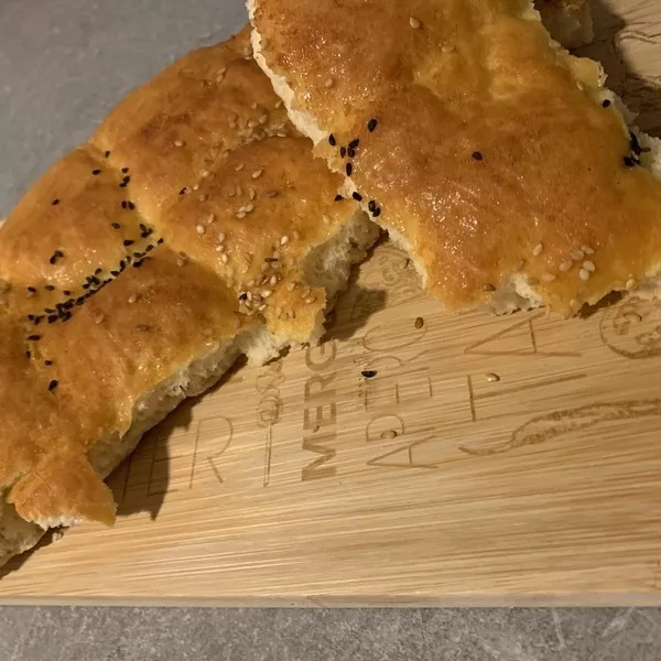 Former une boule et la recouvrir d'une toile silpan. La laisser pousser 1h30 à t° ambiante. La pâte doit doubler de volume.