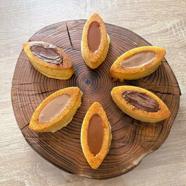 Déposer le moule à barquette sur une plaque perforée. Préchauffer le four à 180°C. Faire fondre le beurre et réservez. Dans un cul de poule, battre les œufs avec le sucre et l’arôme de vanille. Ajouter le yaourt et le lait. Incorporer ensuite la farine, la poudre d’amande et la levure. Ajouter le beurre. Répartir dans le moule (si vous ne remplissez pas complètement, vous pouvez faire 2 fournées !) Enfourner pour 20 minutes. À la sortie du four, laisser refroidir 10-15 minutes & démoulez. Dans chaque empreinte, mettre le topping de votre choix : Nutella, confiture, caramel. …