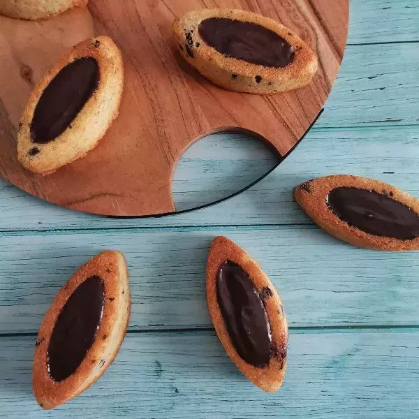Utilisez une poche à douille pour remplir vos empreintes à barquettes, et lissez le dessus à l'aide d'une petite spatule coudée.