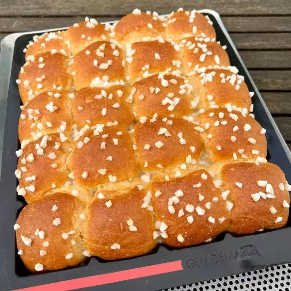 Ajouter la farine, le sucre et la préparation pour pâte briochée. Pétrir pendant 2 minutes à petite vitesse. Avec le racloir, racler la paroi du bol pour ramener la pâte au centre (Corner).
