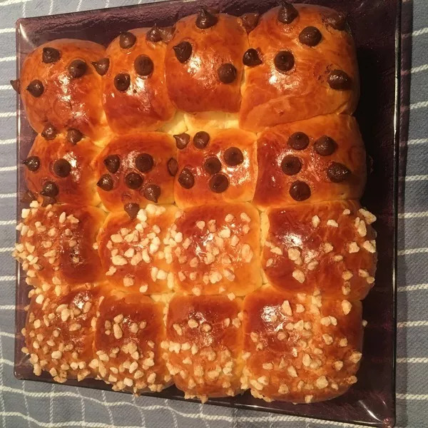 Badigeonnez d'un mélange jaune d'oeuf+lait. Soupoudrez de sucre perlé et enfournez dans un four préchauffé a 160 degrès pour 25 minutes