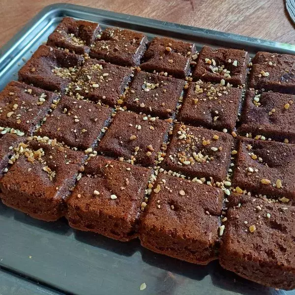 Ajoutez ensuite les noix de pécan concassées (⚠gardez-en 12 entières de côté), mélangez avec la spatule double embout pour bien les répartir dans la pâte. Avec la mini-louche, versez la préparation dans les empreintes et ajoutez une noix de pécan sur chaque brownie.