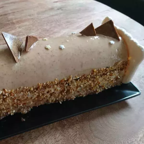 Versez sur la bûche encore congelée (Glaçage à environ 30-35°C).