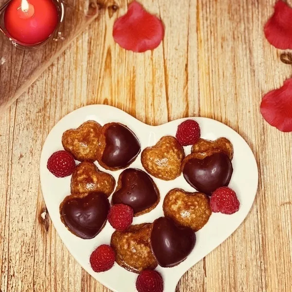 Verser la préparation dans les petits cœurs bombés et enfourner environ 15 minutes.