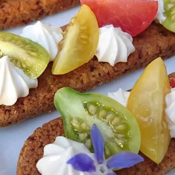Répartir le fromage frais sur le fond de tarte et disposer les légumes et/ou la charcuterie ou à défaut des crevettes, du saumon…