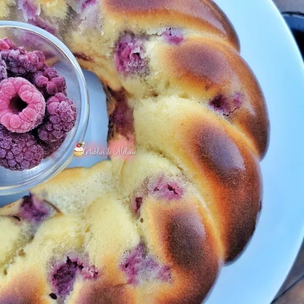 Versez la préparation dans votre moule et ajoutez les framboises en les enfonçant légèrement.
