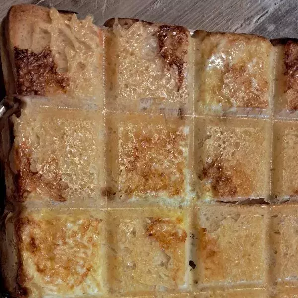 Mettre 4 tranches et couper l'autre en 2. Mettre les légumes , le poulet effiloché . Dessus mettre le cheddar couper en lamelle recouvrir avec le reste de pain de mie . Ajouter l'autre moitié de la préparation et finissez par le gruyère râpée.