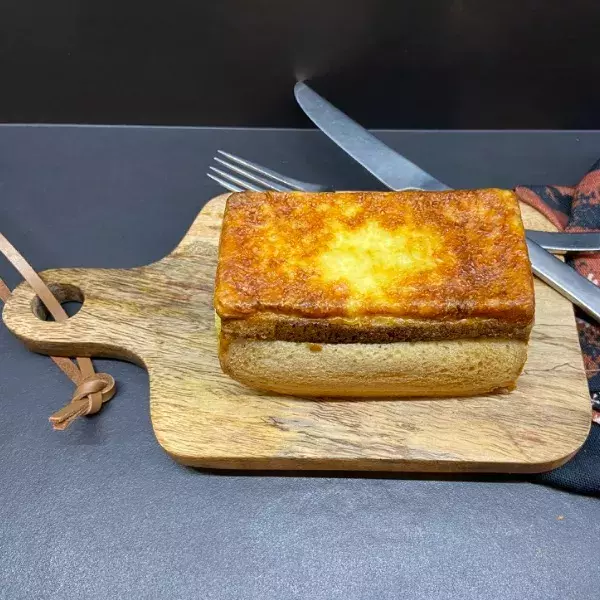 Remplir de la préparation toutes les empreintes en gardant un peu de crème. Fermer avec les derniers morceaux de pain et les mouiller avec le restant de crème .