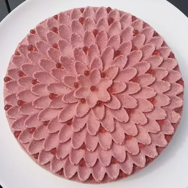 Verser 2/3 de la mousse au chocolat dessus, déposer l'insert au chocolat blanc, puis le reste de mousse et pour finir le biscuit au chocolat. Placer au congélateur pour 10h.