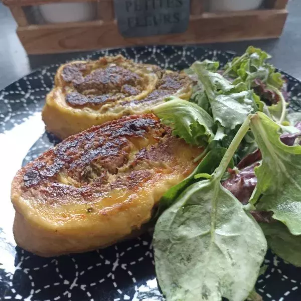 Etaler la farce par dessus et rouler dans le sens de la longueur.