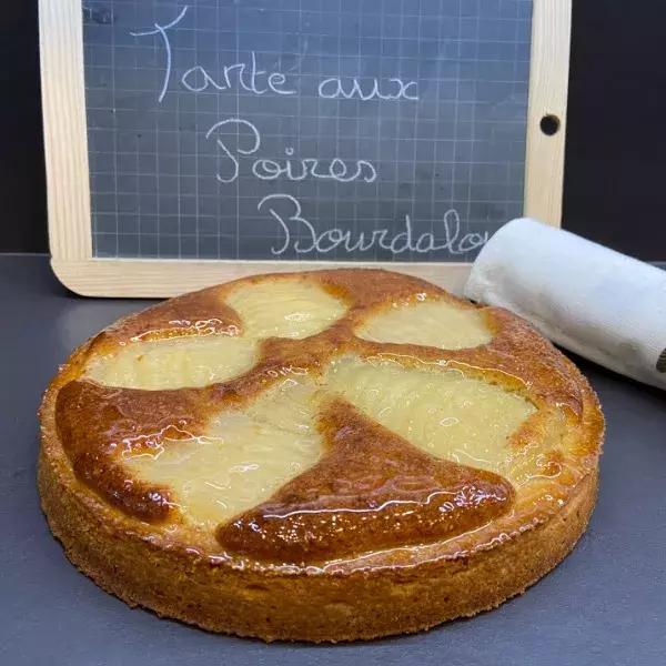 Laver les 2 autres poires sans les éplucher et les couper en fines lamelles que l'on dispose sur le gâteau sans les enfoncer.