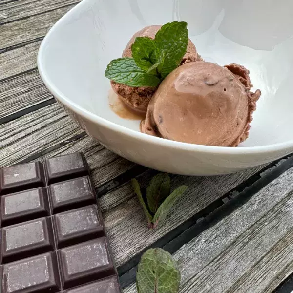 Une glace fraîche et naturelle à la menthe du jardin, ponctuée de morceaux croquants de chocolat noir. Une pure merveille d’été ! 🌿🍫