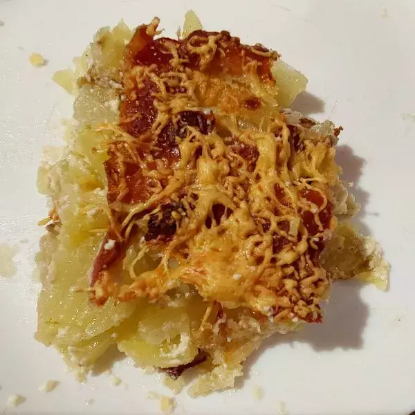 Déposez par dessus des lamelles de jambon sec. Puis le gruyère râpé et l'ail semoule.
