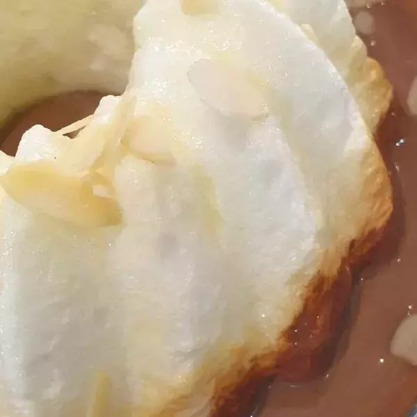 Quand les 30 min se sont écoulées, démoulez sur votre crème chocolatée, parsemez d’amandes effilées.