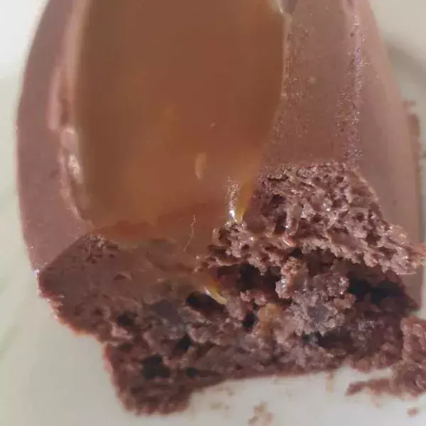 Mettez le moule dans le plat à gratin au four pour une cuisson bain-marie de 8 min, éteignez ensuite le four et laissez reposer dans le four pendant 30 min (ATTENTION, surtout, n’ouvrez pas ma porte du four).