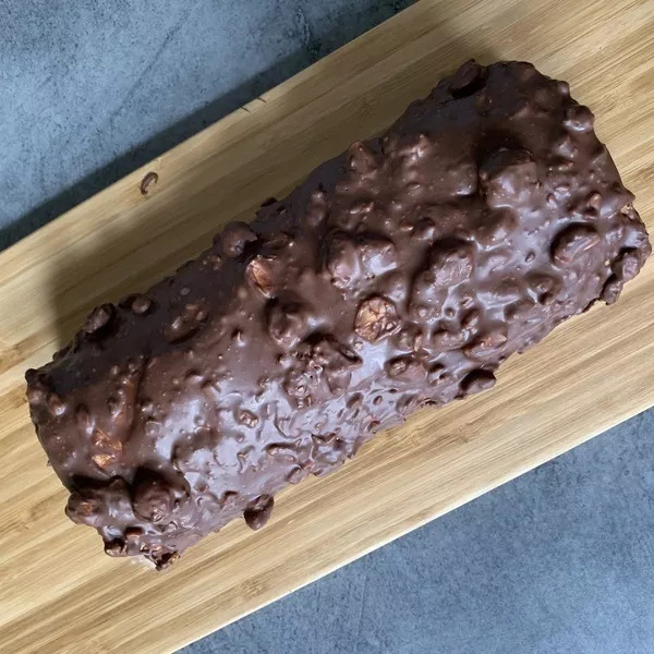 Chauffer légèrement le praliné et mettre dans le creux( la moitié de la plaque)