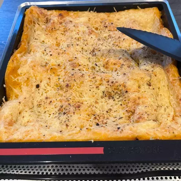 Recouvrez le fond du moule de lait puis posez dessus les plaques de lasagne puis le mélange butternut jusqu'à épuisement.
