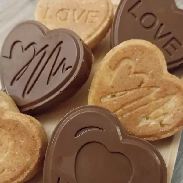 Répartir dans les empreintes et disposer sur le dessus les pistoles de chocolat.