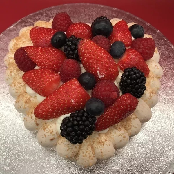 Placez les framboises fraîches sur le pourtour de la coque macaron. Répartissez la crème de citron dessus et posez la 2ème coque dessus. Décorez avec quelques framboises et des pointes de feuille de menthe.