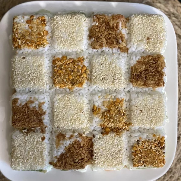 Enlever le cellophane, couper en 2 les boudins, les badigeonner de tarama puis les rouler dans les graines de sésame noirs et blonds.