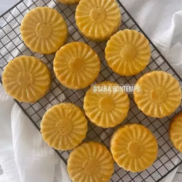 Préchauffer le four à 170 degrés et placer le moule flower power sur la plaque perforée. Faire fondre le beurre et réserver. Dans un cul-de-poule, mélanger au fouet les œufs et le sucre jusqu'à ce que le mélange blanchisse. Ajouter la poudre d'amande, la noix de coco la vanille en poudre et la farine.