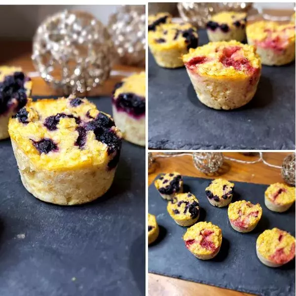 Diviser la pâte en deux et ajouter les fruits et repartir dans les empreintes