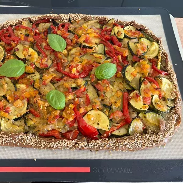 Préchauffez votre four à 200°C (th. 6-7) puis placez votre sur la plaque perforée. Montez les blancs d’œufs en neige avec une pincée de sel. Au batteur, montez 2 œufs avec les 4 jaunes d’œufs. Ajoutez délicatement les blancs montés. Versez le tout dans le , égalisez la surface avec une spatule coudée et faites cuire 10 minutes à 200°C (th. 6-7).