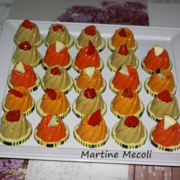 30 mn minimum avant de servir les panna cotta, sortez le moule du congélateur et les démouler. Les garnir avec de la crème fraiche et 2 crevettes grises ou 1 petite feuille de mache ou du fromage frais ou encore une fleur..... et réservez au frigo