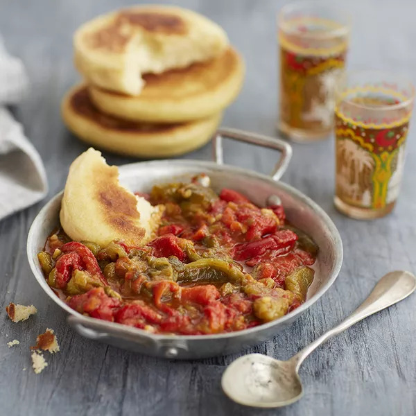 Étape 1: Couper 6 mini poivrons rouges et jaunes émincés. Couper le chorizo en tranches fines. Couper les tomates en quartiers. Émincer l'oignon.