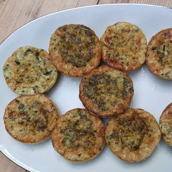 4) Placer les rondelles de courgettes dans le moule à muffins tout au tour. Ajouter la truite mixée, une rondelle de courgette, morceaux de truite et terminer par une rondelle de courgette.