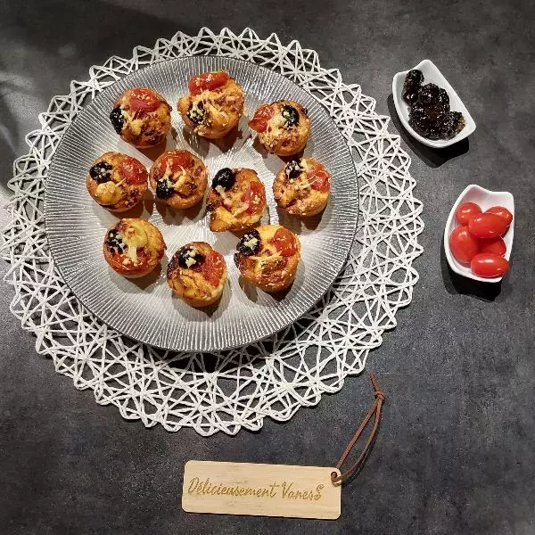 Ajoutez 2 cas de pesto rouge, 100g de mozzarella râpée, des olives noires coupées en deux, 1 pincée de sel et poivre.