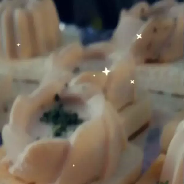 Quand les toasts sont froids, sortez les mousses du congélateur, démoulez-les et déposez-les sur les toasts.