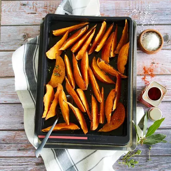 Disposez les patates douces sur la tranche dans le Moule Rectangulaire familial OHRA®. Faites cuire à 220°C (thermostat 7-8) pendant 15 minutes.
