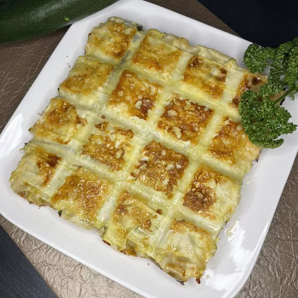 Faire revenir les poireaux, la courgette, le poivron et les champignons émincés avec la mandoline dans un peu de beurre et d’huile d’olive sur feu moyen.
