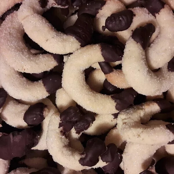 Abaisser la pâte claire puis la pâte chocolatée. Les poser l'une sur l'autre et les rouler. Enrouler dans un film alimentaire. Mettre au frais pendant 1 heure.