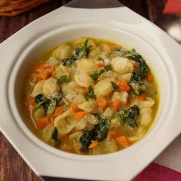Goûtez et rectifiez l'assaisonnement si nécessaire. Répartissez la soupe dans les assiettes. Dans un bol, mélangez le pistou avec la purée de tomates séchées. Incorporez-en une cuillère à soupe dans chaque assiette. Présentez le parmesan râpé dans un bol à part afin que vos convives s'en servent à leur convenance.