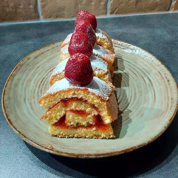 Garnissez le gâteau une fois refroidi,couvrez le gâteau de pâte à tartiner ou confiture, puis enroulez-le pour former votre roulé.Coupez les 2 extrémités pour un rendu plus propre.