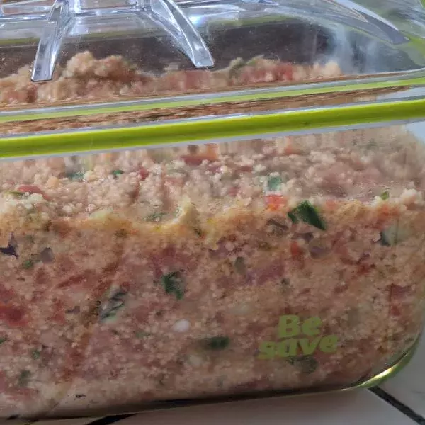 pour 4 personnes: 300g semoules, 4 tomates,1/2 concombre, 1/2 oignon, 13 cl jus de citron, 13 cl huile d'olive