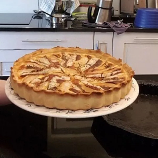 Mettre au four 35 minutes. Tounez la tarte mi-cuisson.