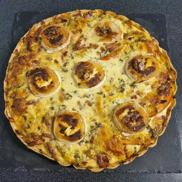 ✔️Badigeonner le fond de tarte de moutarde au miel à l'aide du pinceau puis répartir le potimarron, recouvrir avec la préparation.