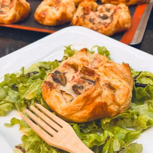 Mettre une bonne cuillère à soupe de courge cuite dans chaques tartelettes, alterné avec des morceaux de jambon et remettre de la courge cuite et une louchette de l'appareil oeuf+crème. Puis déposer de l'emmental rapé si vous le souhaitez.