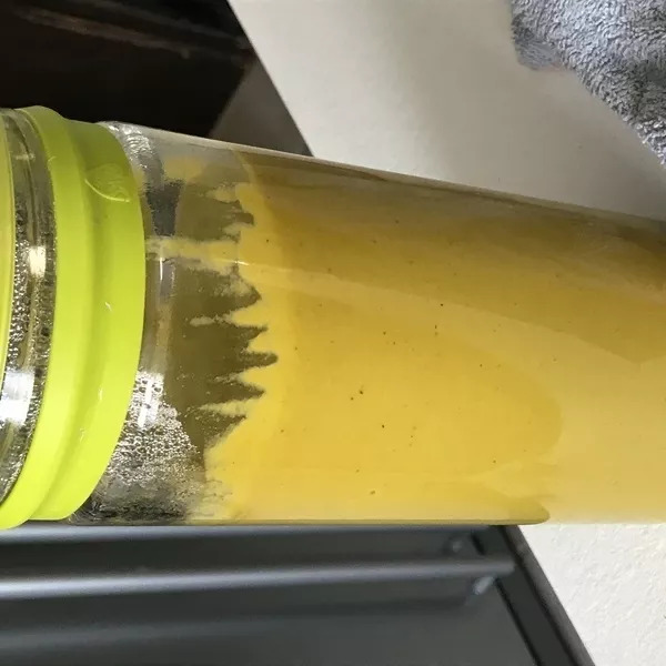 A la fin ajouter la crème fraîche et mixer le tout en mettant le panier inox a l'envers, mettre la vitesse sur 5 et appuyer sur turbo 8 fois. Assaisonner avec le miel, le jus de citron vert, le sel et le poivre.
